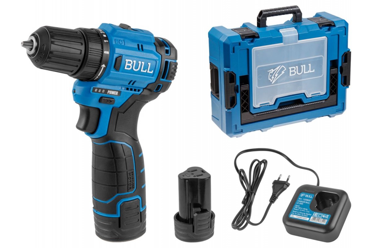 Аккум. дрель-шуруповерт BULL SR 1203 Xcase БЕСЩЕТ., 12 В, 37 Н*м, 2*2 А*ч акб, БЗП 10 мм