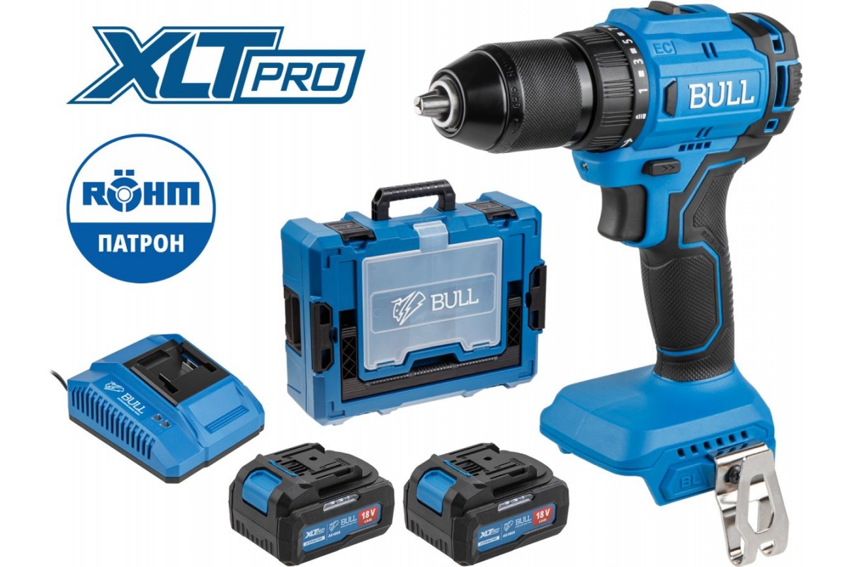 Аккум. дрель-шуруповерт BULL SR 1803 Xcase XLTpro БЕСЩЕТ., 2x4 А*ч, 18 В, 45 Н*м, БЗП 13 мм