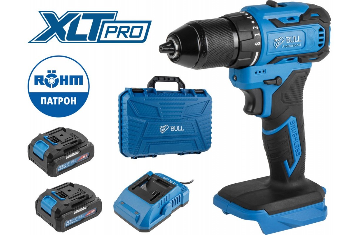 Аккум. дрель-шуруповерт BULL SR 1804 R-series в чем. XLTpro БЕСЩЕТ., Импульс., 18 В, 50 Н*м, 2х2 А*ч