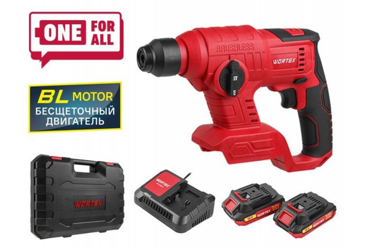 Модель имеет бесщеточный двигатель, что продлевает срок службы инструмента в 2 раза, делает его на 30% мощнее при меньших размерах и весе, позволяет работать до 50% дольше на одном заряде аккумулятора. Малый вес и компактные размеры делают данный перфоратор незаменимым при работе в труднодоступных местах без внешнего источника питания. В компактности превосходит все модели линейки перфораторов Wortex. Имеет два режима работы: сверление, сверление с ударом. Оснащен подсветкой, реверсом, эргономичной прорезиненной рукояткой. В комплекте 2 аккумулятора и зарядное устройство. Напряжение: 18 В; Тип аккумулятора: li-ion; Тип двигателя: бесщеточный; Номинальное число оборотов: 0-730 обмин; Сила удара: 1,2 Дж; Номинальное число ударов:0-4600 уд.мин.; Макс. диаметр при сверлении: бетона - 20 мм, дерева - 20 мм, стали 10 мм; Функция реверса; Масса (масса без принадлежностей): 1,14 кг; Тип патрона: SDS; Гарантийный срок - 2 года