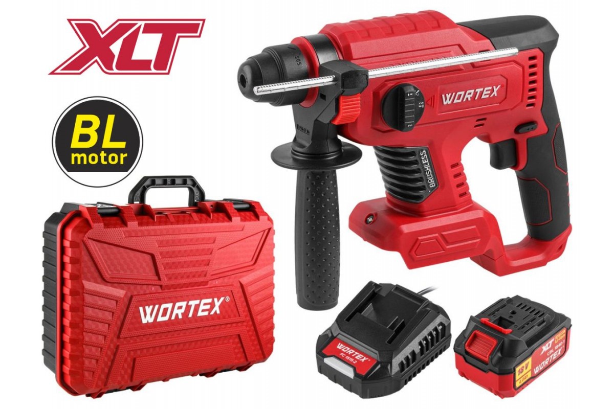 Модель имеет бесщеточный двигатель, что продлевает срок службы инструмента в 2 раза, делает его на 30% мощнее при меньших размерах и весе, позволяет работать до 50% дольше на одном заряде аккумулятора. Перфоратор имеет металлическую накладку возле платы управления, для более эффективного охлаждения, что значительно увеличит срок его службы. Повышенная прочность ударного механизма обеспечит высокую производительность и повысит комфорт использования. Малый вес и компактные размеры делают данный перфоратор незаменимым при работе в труднодоступных местах без внешнего источника питания. Имеет три режима работы: сверление, сверление с ударом, долбление, а также функцию регулировки угла оснастки (механическое управление). Оснащен подсветкой, реверсом, эргономичной прорезиненной рукояткой. Инструмент входит в линейку WORTEX ALL1 на одном аккумуляторе, которая представлена более чем 50 моделями. Данная модель поставляется в комплекте с аккумулятором и зарядным устройством в надежном пластиковом кейсе. Напряжение аккумулятора: 18 В; Тип аккумулятора: Li-ion; Номинальное число оборотов: 0-1550 обмин; Номинальное число ударов: 0-4950 удмин; Сила удара: 2,2 Дж; Макс. диаметр сверла при сверлении бетона: 20 мм; Макс. диаметр сверла при сверлении дерева: 26 мм; Макс. диаметр сверла при сверлении стали: 13 мм; Масса (без принадлежностей): 1,7 кг; Комплект поставки: 0329187 Аккумулятор WORTEX CBL 1840-1 18.0 В, 4.0 Ач, Li-Ion ALL1 - 1 шт.; 0329180 Зарядное устройство WORTEX FC 1515-1 ALL1 - 1 шт.; -инструкция по эксплуатации; -ограничитель глубины сверления; -кейс; Гарантийный срок - 2 года.