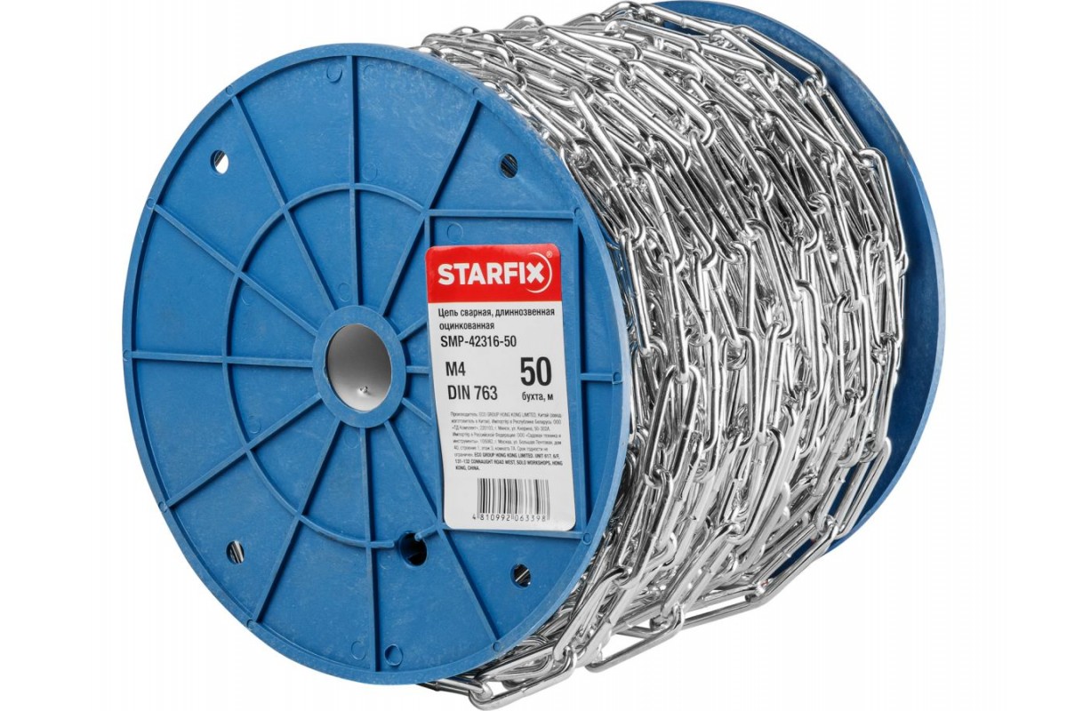 Цепь сварная длиннозвенная, оцинк. М4 DIN 763 (бухта 50 м) STARFIX