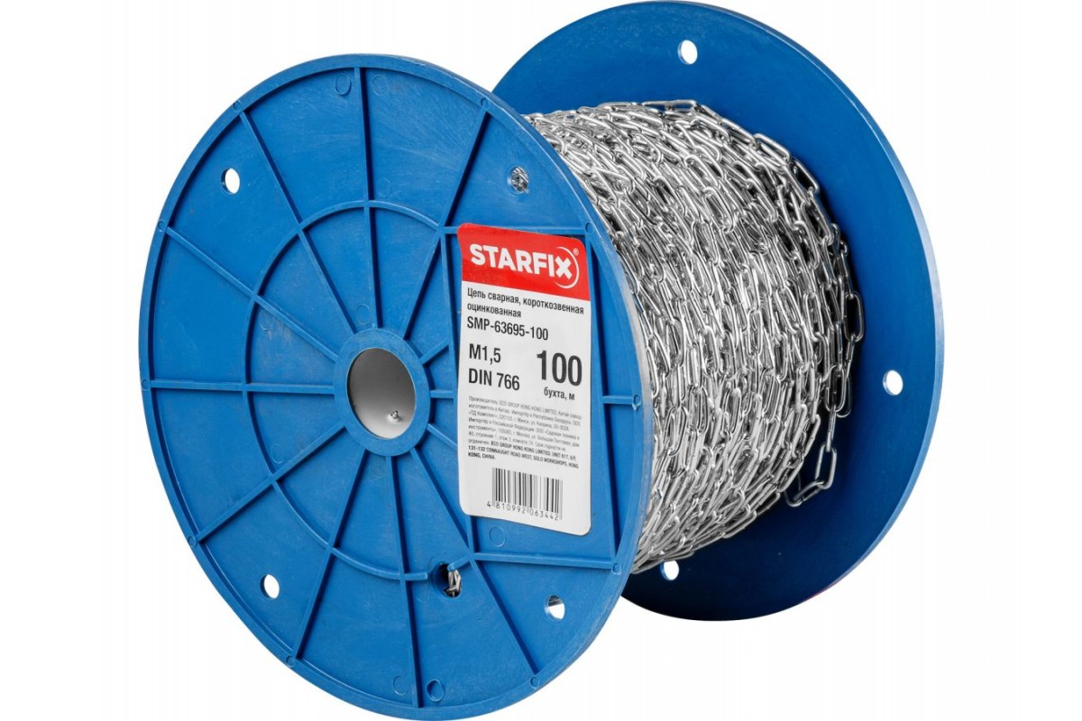 Цепь сварная короткозвенная, оцинк. М1,5 DIN 766 (бухта 100 м) STARFIX