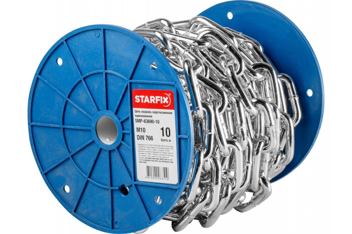 Цепь сварная короткозвенная, оцинк. М10 DIN 766 (бухта 10 м) STARFIX