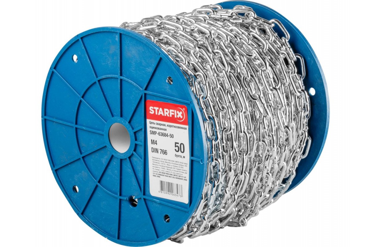 Цепь сварная короткозвенная, оцинк. М4 DIN 766 (бухта 50 м) STARFIX