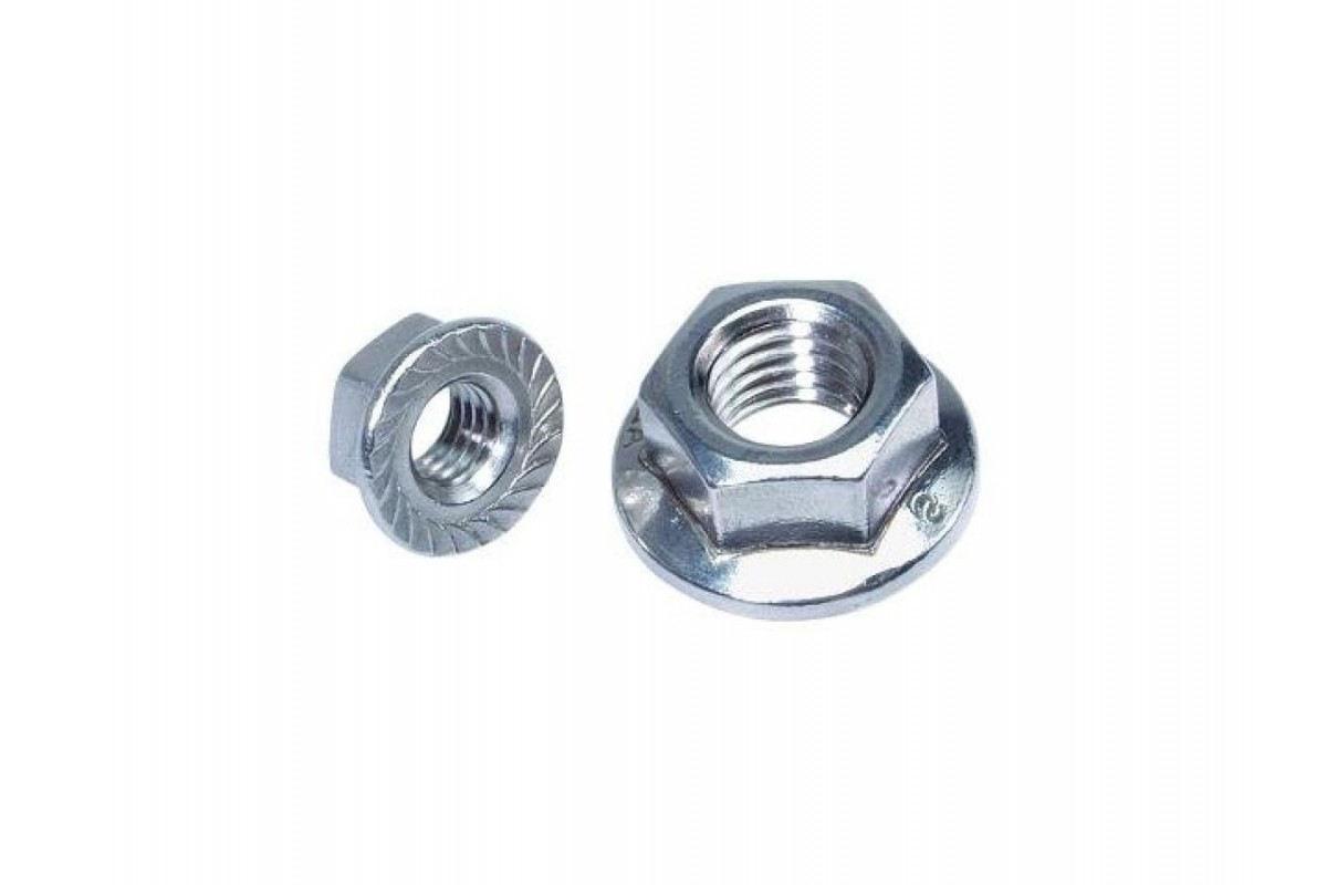 Размер под ключ - 24 Покрытие - цинк Шаг резьбы - 2,0мм Диаметр наружный - 34,5мм Класс прочности - 6. Применяется в машиностроении и деревообрабатывающем производстве. На фланце имеется рифление, которое обеспечивает надежную фиксацию гайки и предотвращает откручивание.