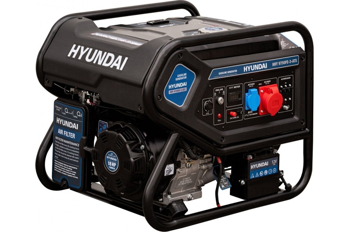 Генератор бензиновый HYUNDAI HHY9750FE-3-ATS обновленной линейки 2021 года. Служит для снабжения электричеством различных потребителей, в том числе и потребителей с высокими пусковыми токами. Данная модель широко используется на строительных площадках.