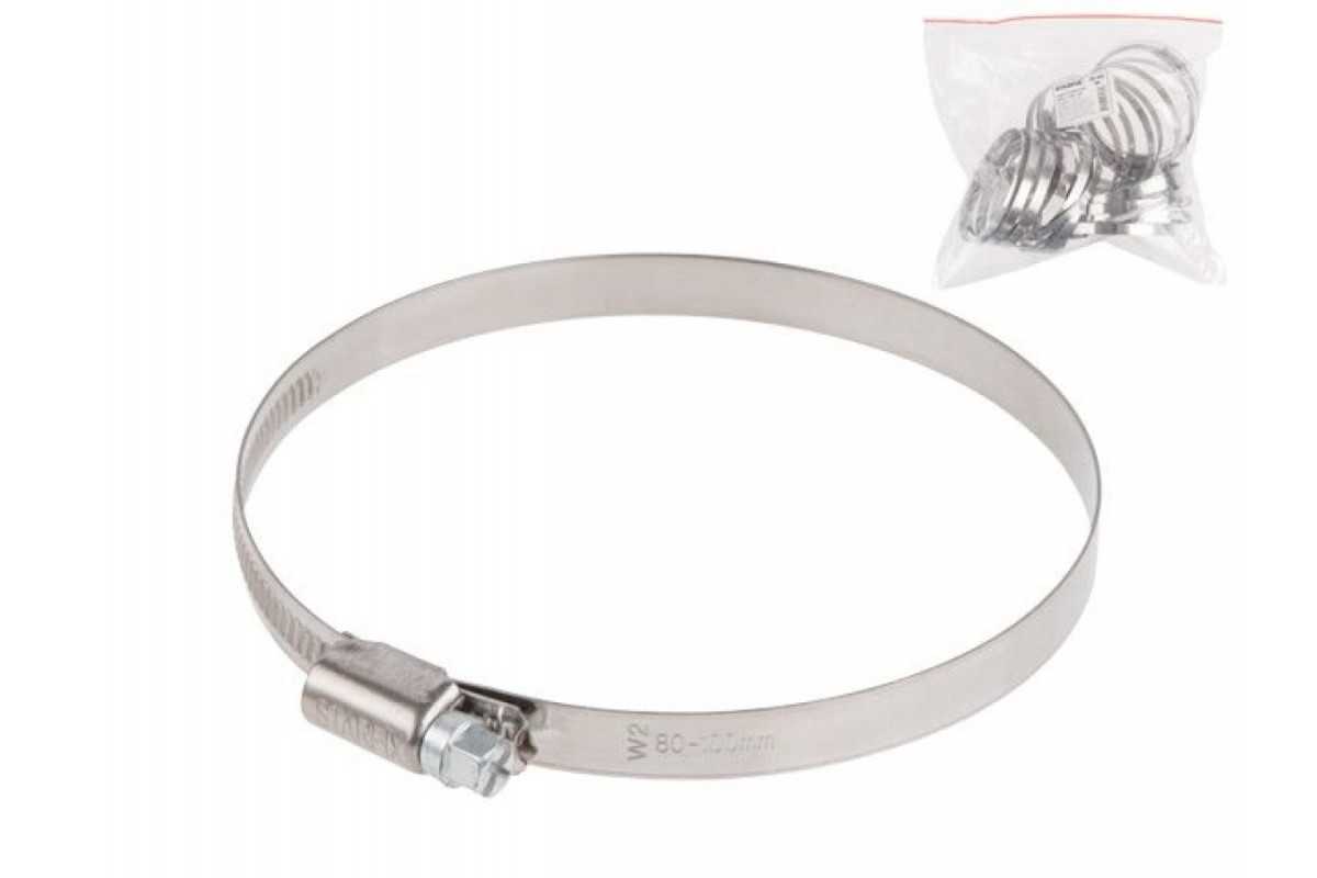 Хомут червячный 80-100 мм, нерж.сталь (W2) (25 шт в пакете) STARFIX