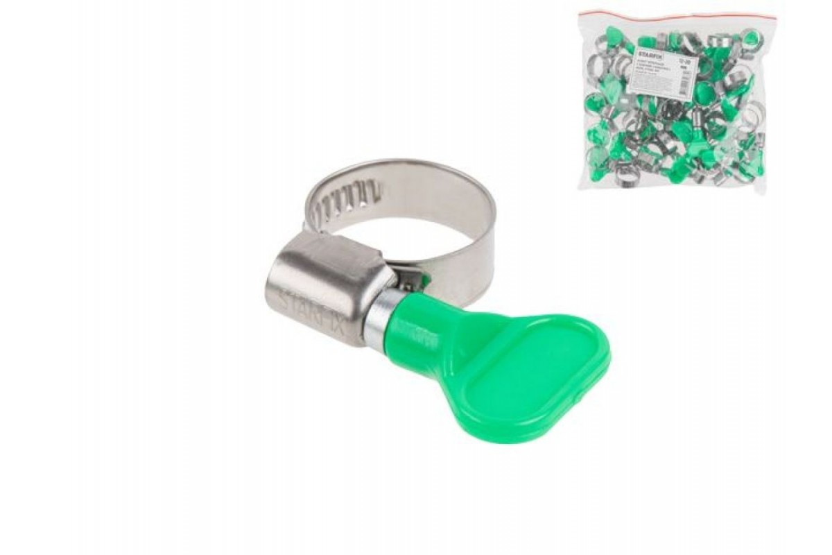 Хомут червячный с ключом "бабочка" 16-25 мм, нерж.сталь W2 (50 шт в пакете) STARFIX