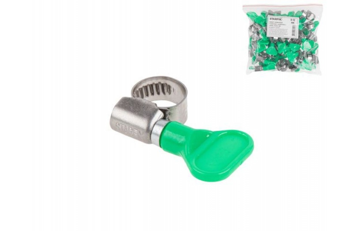Хомут червячный с ключом "бабочка" 8-12 мм, нерж.сталь W2 (50 шт в пакете) STARFIX