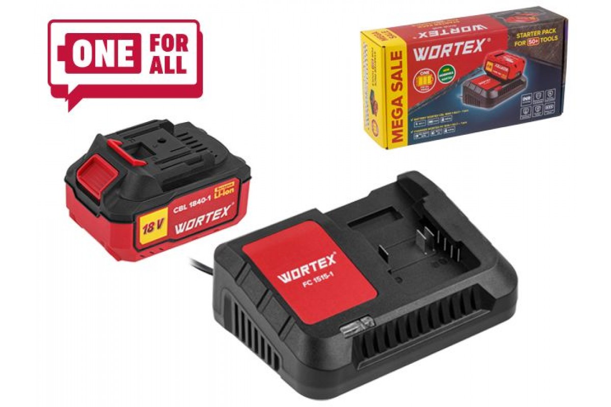 Стартовый набор для пользователей аккумуляторной линейки WORTEX ONE FOR ALL со скидкой в 20%!В набор входят 1 аккумуляторная батарея емкостью 4 А*ч и однослотовое зарядное устройство с силой тока в 2 А.