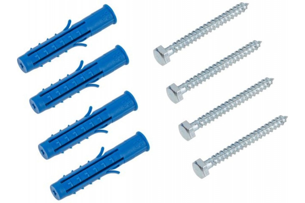 Состав набора: Дюбель распорный 10х60 четырехсегментный - 4 шт Шуруп 6х60 шестигр. головка, цинк DIN 571 - 4 шт