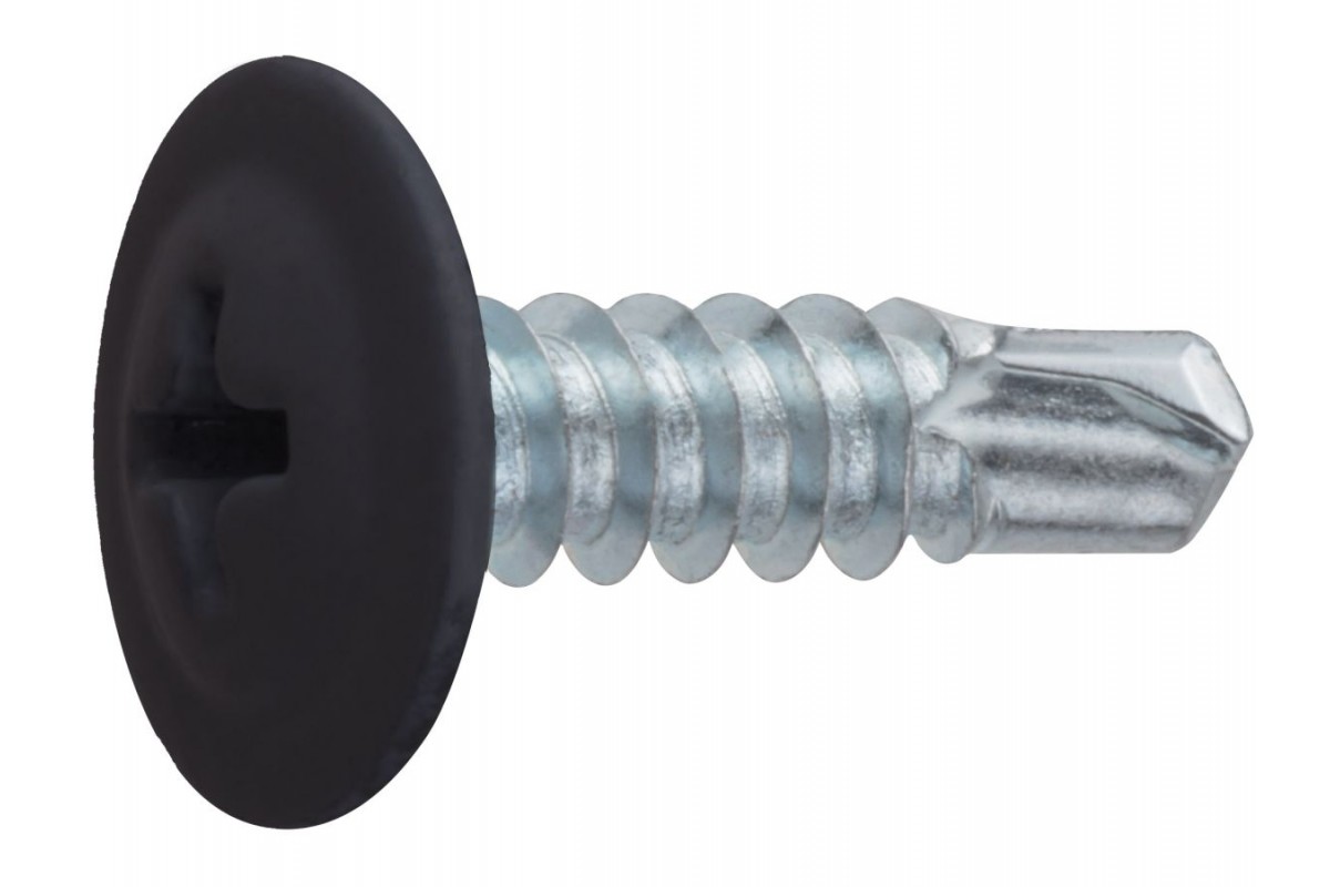 Саморез 4.2х16 мм с прессшайбой, цинк, со сверлом, RAL 9005 (14000 шт в коробе) STARFIX