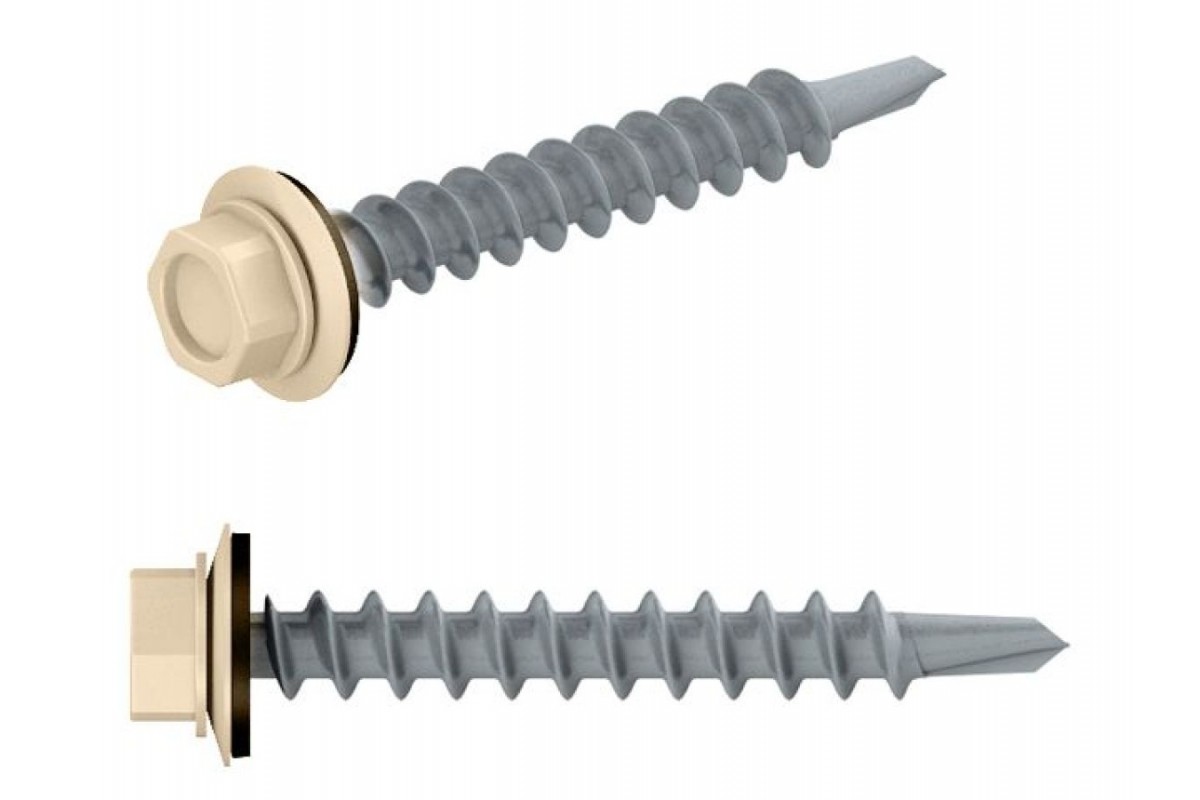 Саморез кровельный 4.8х19 мм цинк, шайба с прокл., PT3, RAL 1015 (100 шт в пласт. конт.) STARFIX (по металлу, цвет светлая слоновая кость)