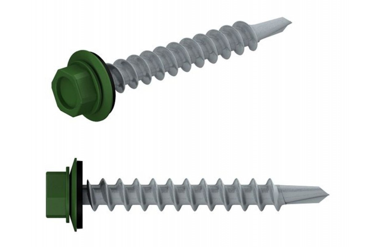 Саморез кровельный 4.8х19 мм цинк, шайба с прокл., PT3, RAL 6002 (250 шт в карт. уп.) STARFIX (по металлу, цвет лиственно-зеленый)