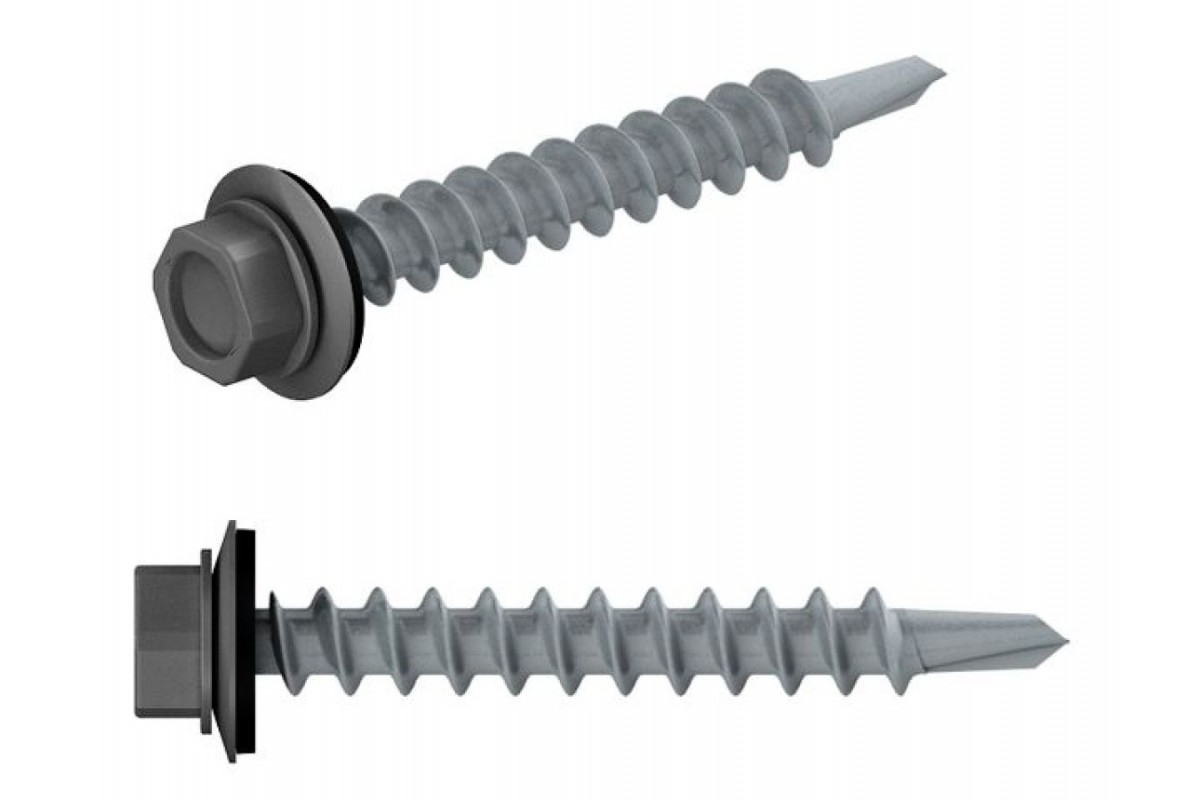 Саморез кровельный 4.8х19 мм цинк, шайба с прокл., PT3, RAL 7024 (100 шт в пласт. конт.) STARFIX (по металлу, цвет графитово-серый)