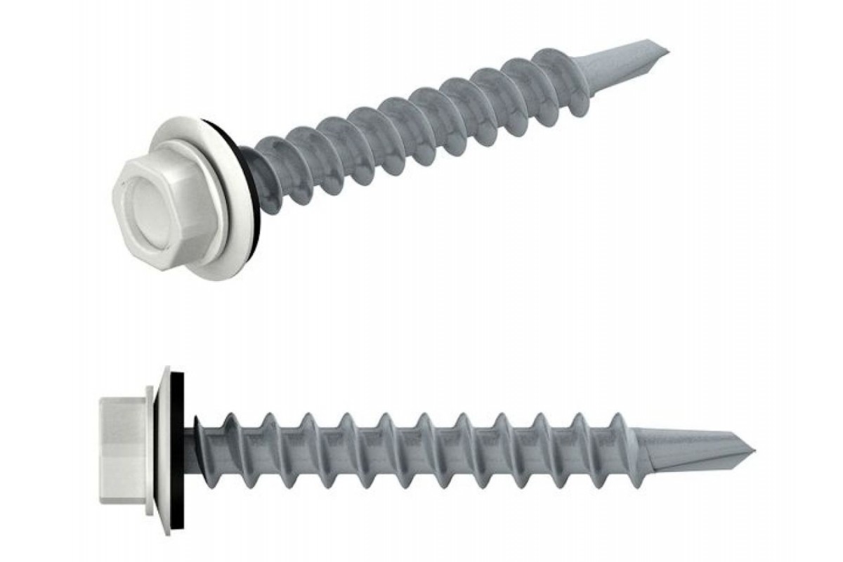 Саморез кровельный 4.8х29 мм цинк, шайба с прокл., PT1, RAL 9003 (200 шт в карт. уп.) STARFIX (по дереву, цвет сигнальный белый)