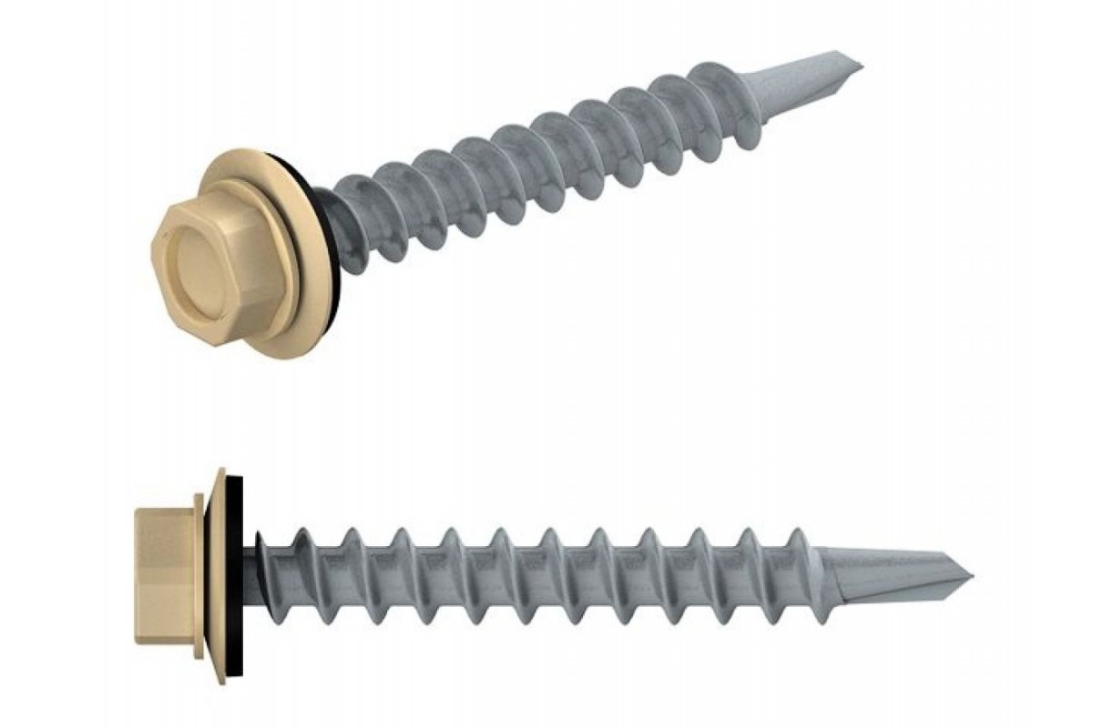 Саморез кровельный 4.8х70 мм цинк, шайба с прокл., PT1, RAL 1014 (100 шт в карт. уп.) STARFIX (по дереву, цвет слоновая кость)
