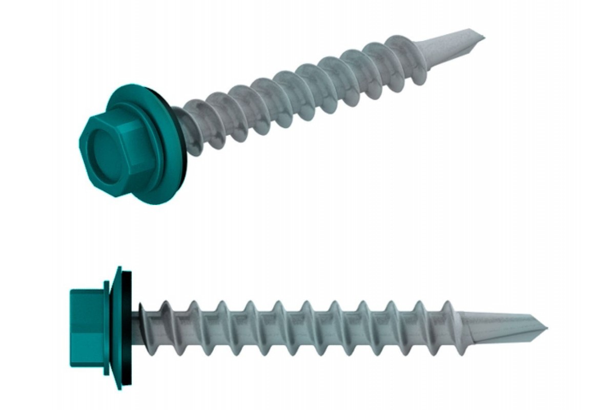 Саморез кровельный 5.5х19 мм цинк, шайба с прокл., PT3, RAL 5021 (300 шт в карт. уп.) STARFIX (по металлу, цвет водная синь)