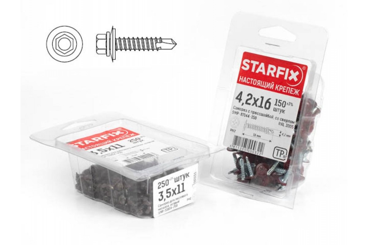 Саморез кровельный 5.5х38 мм цинк, шайба с прокл., PT3 (50 шт в пласт. конт.) STARFIX (по металлу)