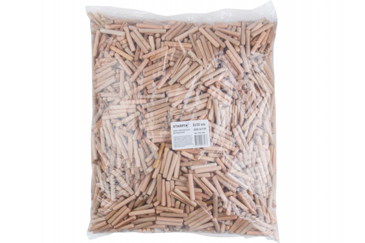 Шкант мебельный 8х50 мм деревянный (2000 шт в пакете) STARFIX