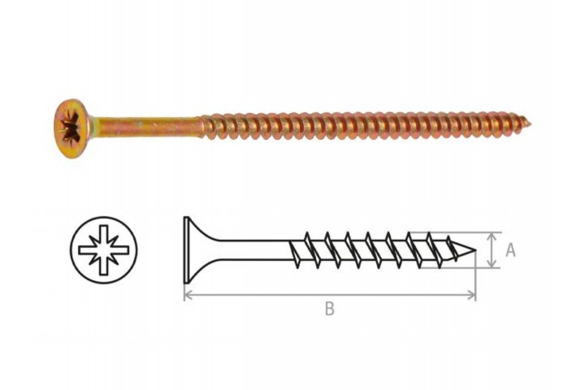 Используется для крепления различных конструкций к дереву, фанере, ДСП. Шуруп имеет потайную головку с крестообразным шлицем (PZ) и острый наконечник. Неполная резьба - 60 мм