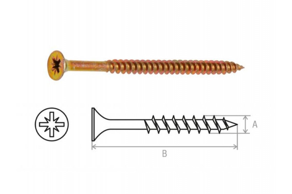 Используется для крепления различных конструкций к дереву, фанере, ДСП. Шуруп имеет потайную головку с крестообразным шлицем (PZ) и острый наконечник. Неполная резьба - 60 мм