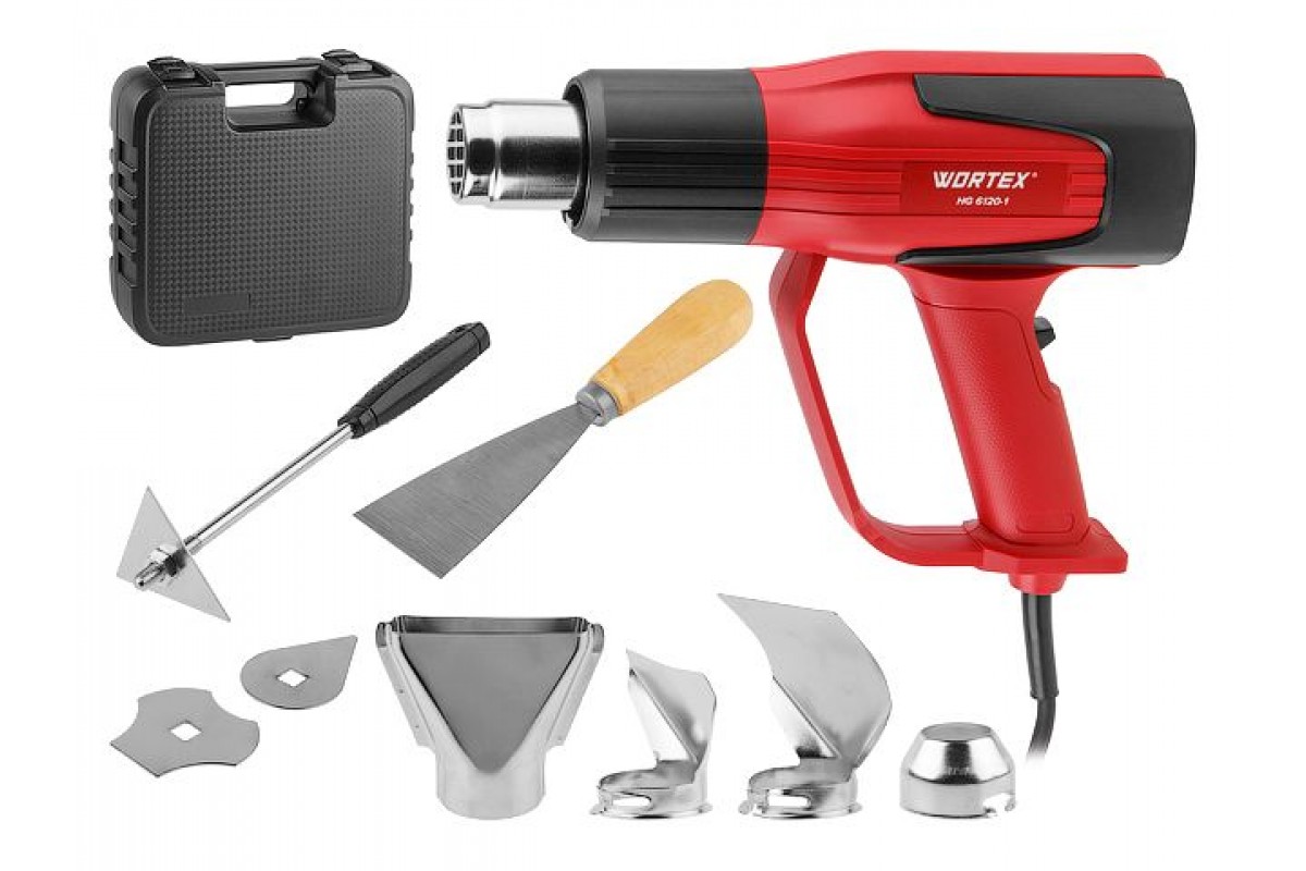 Термовоздуходувка WORTEX HG 6120-1 в чем. + набор сопл 2000 Вт