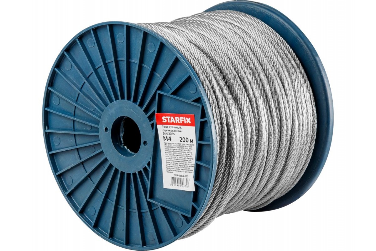 Трос стальной, оцинк. М4 DIN 3055 (бухта 200 м) STARFIX