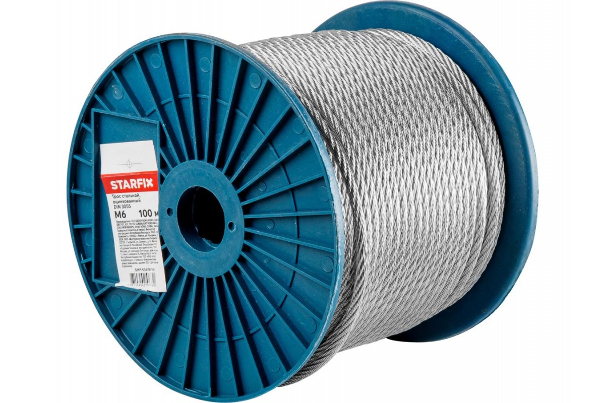 Трос стальной, оцинк. М6 DIN 3055 (бухта 100 м) STARFIX