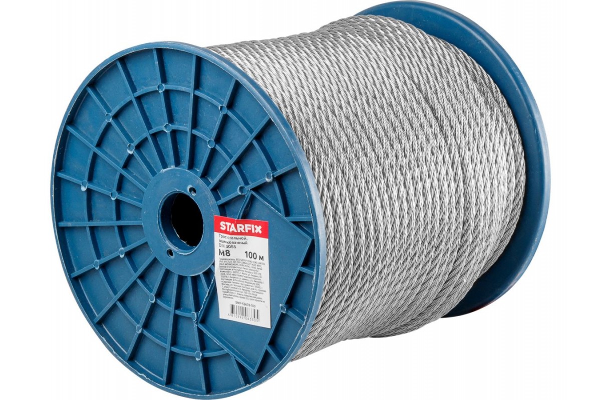 Трос стальной, оцинк. М8 DIN 3055 (бухта 100 м) STARFIX