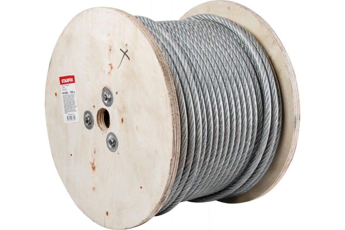 Трос стальной в ПВХ М10(8) DIN 3055 (бухта 100 м) STARFIX