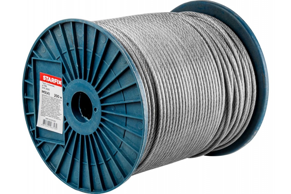 Трос стальной в ПВХ М5(4) DIN 3055 (бухта 200 м) STARFIX