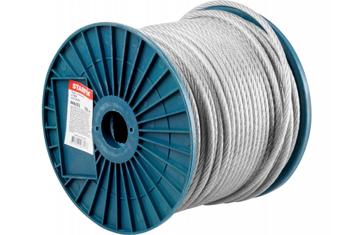 Трос стальной в ПВХ М6(5) DIN 3055 (бухта 100 м) STARFIX