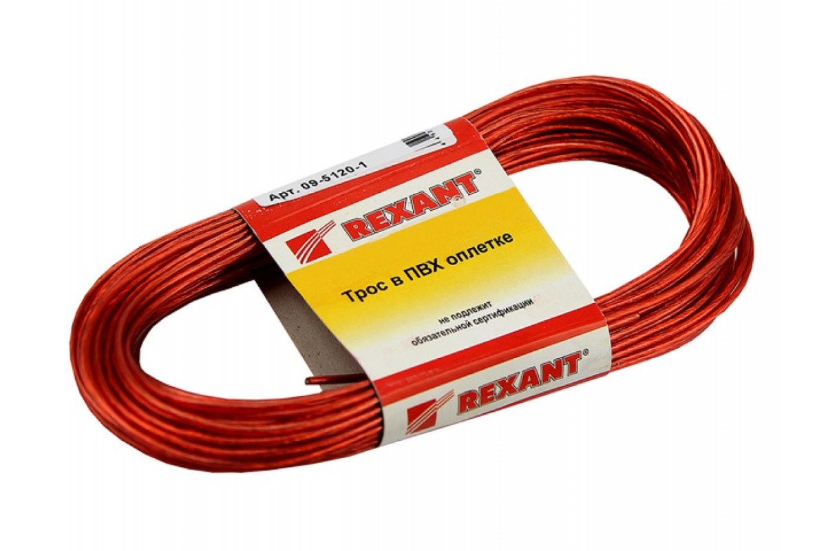 Трос стальной в ПВХ оплетке d=2,0 мм, красный ( моток 20 м) REXANT