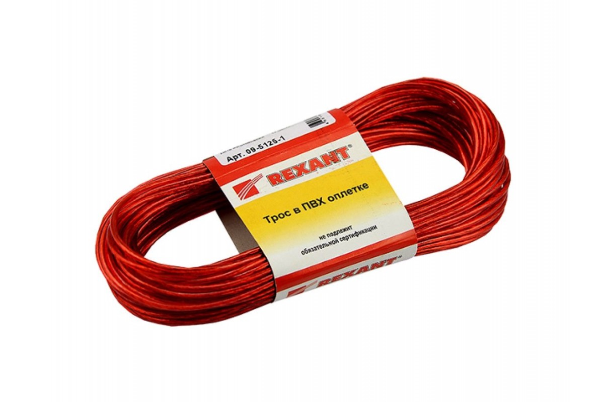 Трос стальной в ПВХ оплетке d=2,5 мм, красный ( моток 20 м) REXANT