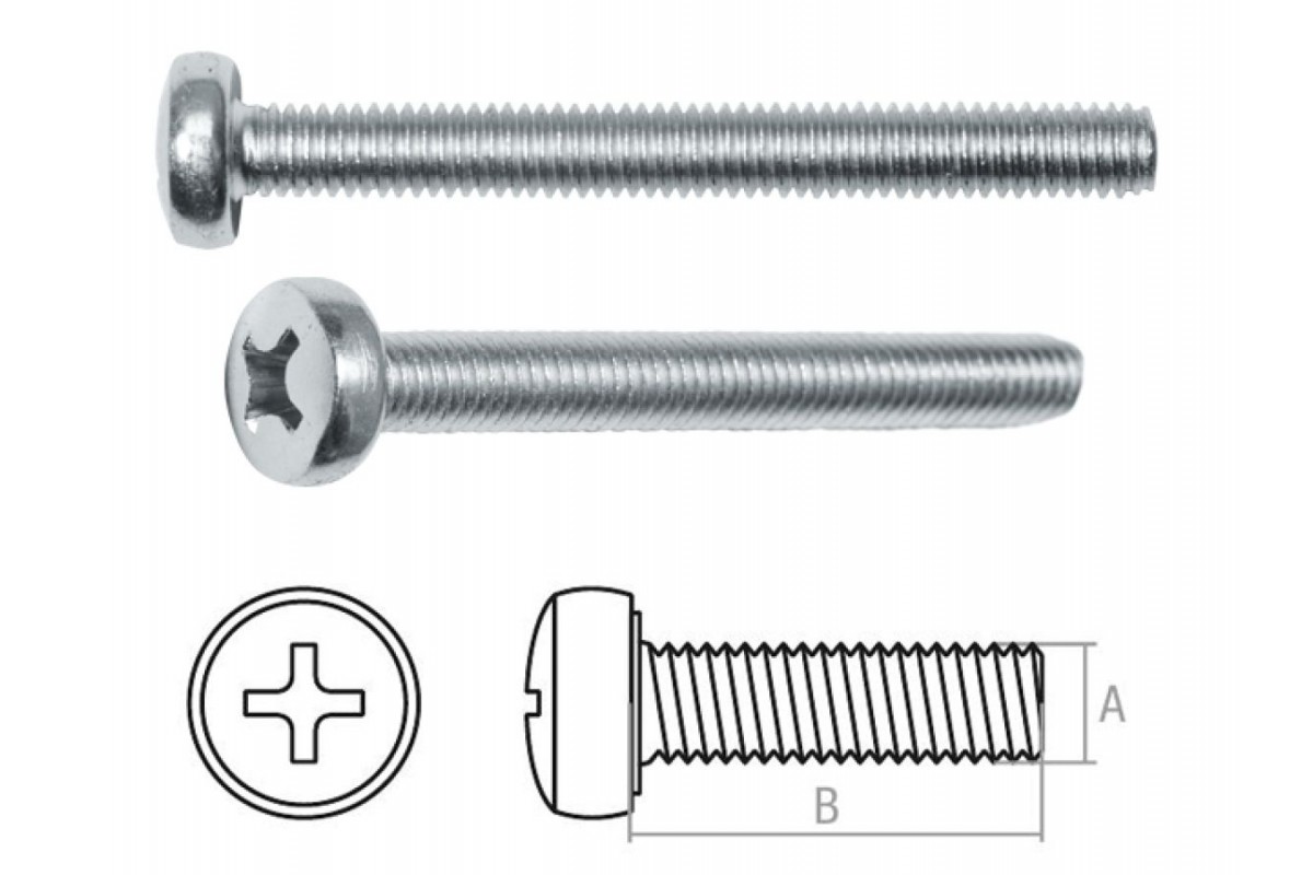 Покрытие - цинк Шаг резьбы - 1мм Длина резьбы - 10мм Шлиц - РН3 Класс прочности - 5,8. Применяется для монтажа листового металла, для соединения профилей из жести, в машиностроении